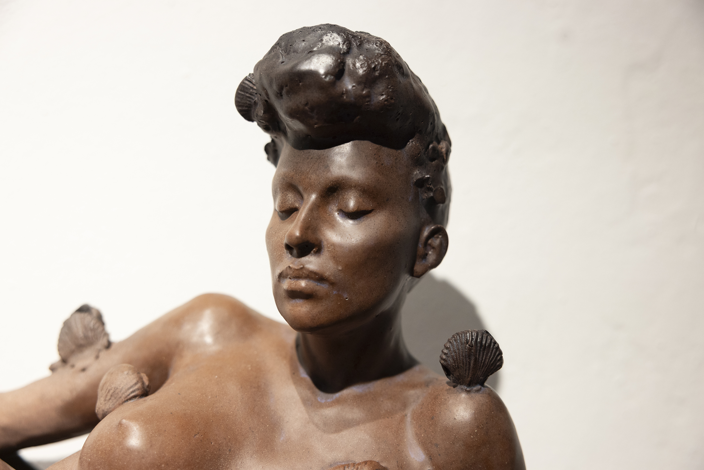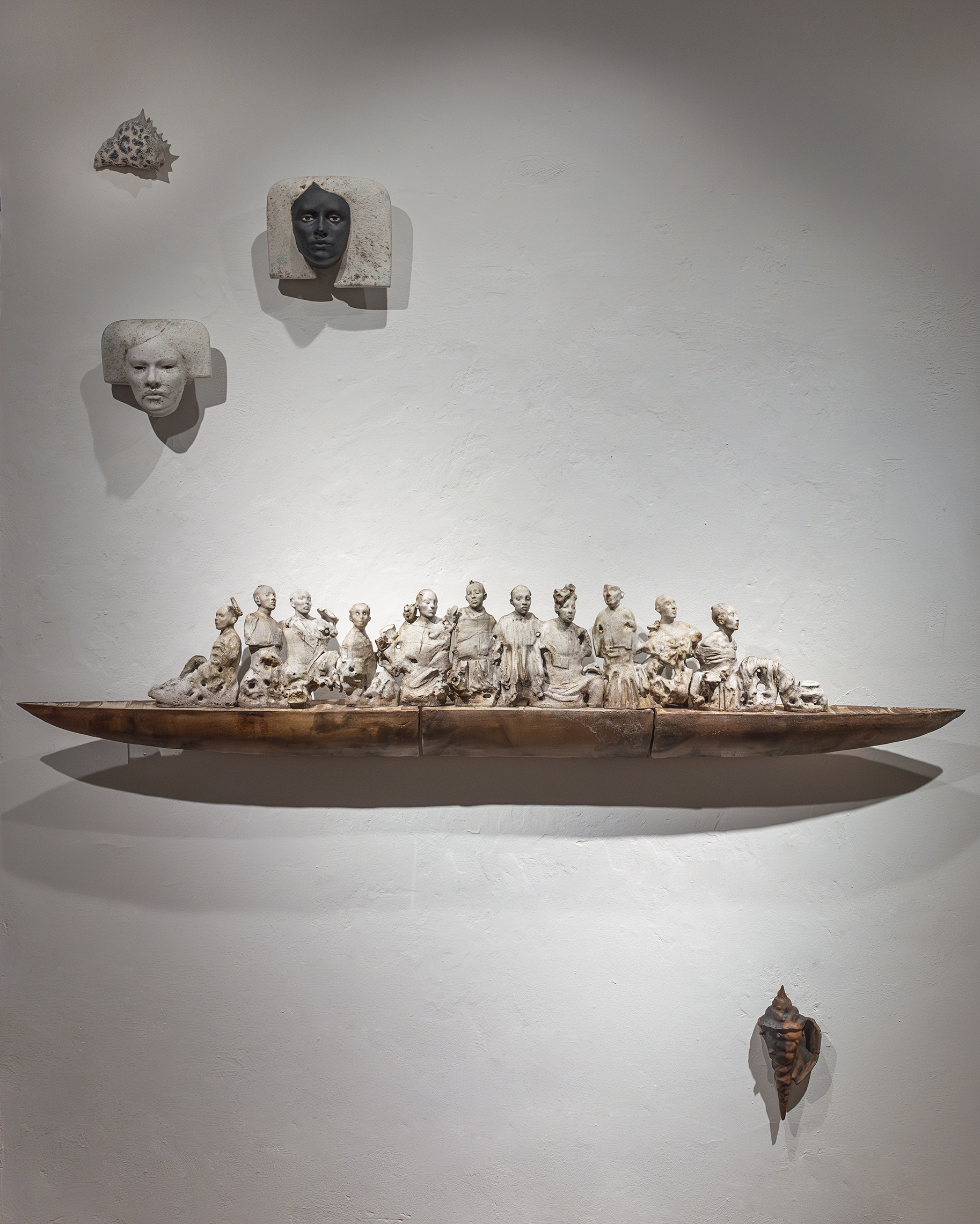 A medio camino entre los ritos de las culturas mediterráneas y las caribeñas, laartista nos sumerge en un ámbito acuático dentro del cual una galería de personajes alberga ensus formas los reflejos de ese pasado, aunque sin dejar a un lado las realidades y los testimoniosde un presente no tan ajeno. Es en dicha dicotomía, precisamente, donde el mar juega su papel decreador y depositario de una memoria común: no es casualidad, en efecto, que de su espuma(re)surja una Venus anacrónica, ni tampoco que otras figuras—cabezas, fragmentoscorporales—parezcan rememorar a aquellos seres, divinos o no, fruto de un subconscientecolectivo tan remoto como actual.