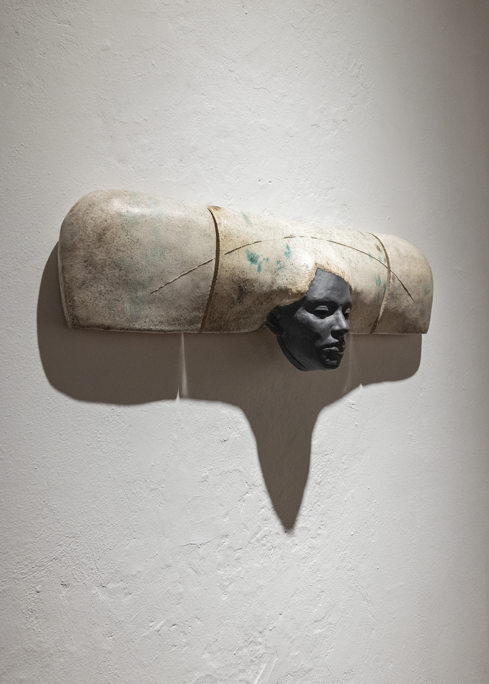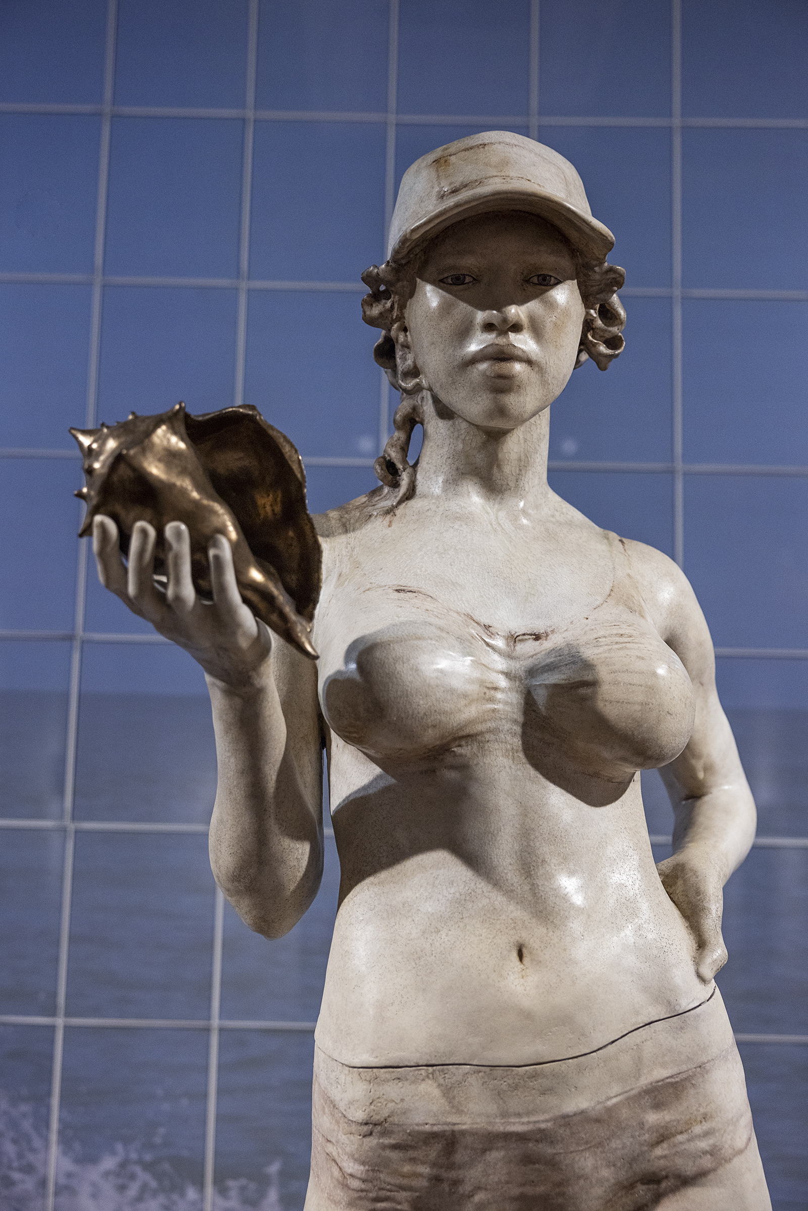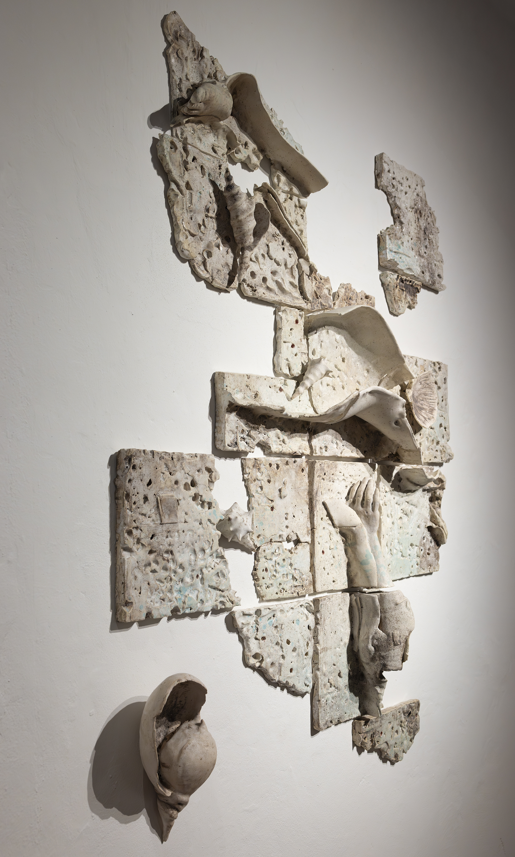 Positioned midway between the rituals of Mediterranean and Caribbean cultures, the artist immerses us in an aquatic realm where a gallery of characters bears in its forms the echoes of that past, while at the same time acknowledging the realities and testimonies of a not-so-distant present. It is within this very dichotomy that the sea assumes its role as creator and repository of a shared memory: it is no coincidence, indeed, that from its foam an anachronistic Venus (re)emerges, nor that other figures—heads, bodily fragments—seem to recall those beings, divine or otherwise, born of a collective subconscious as remote as it is contemporary.