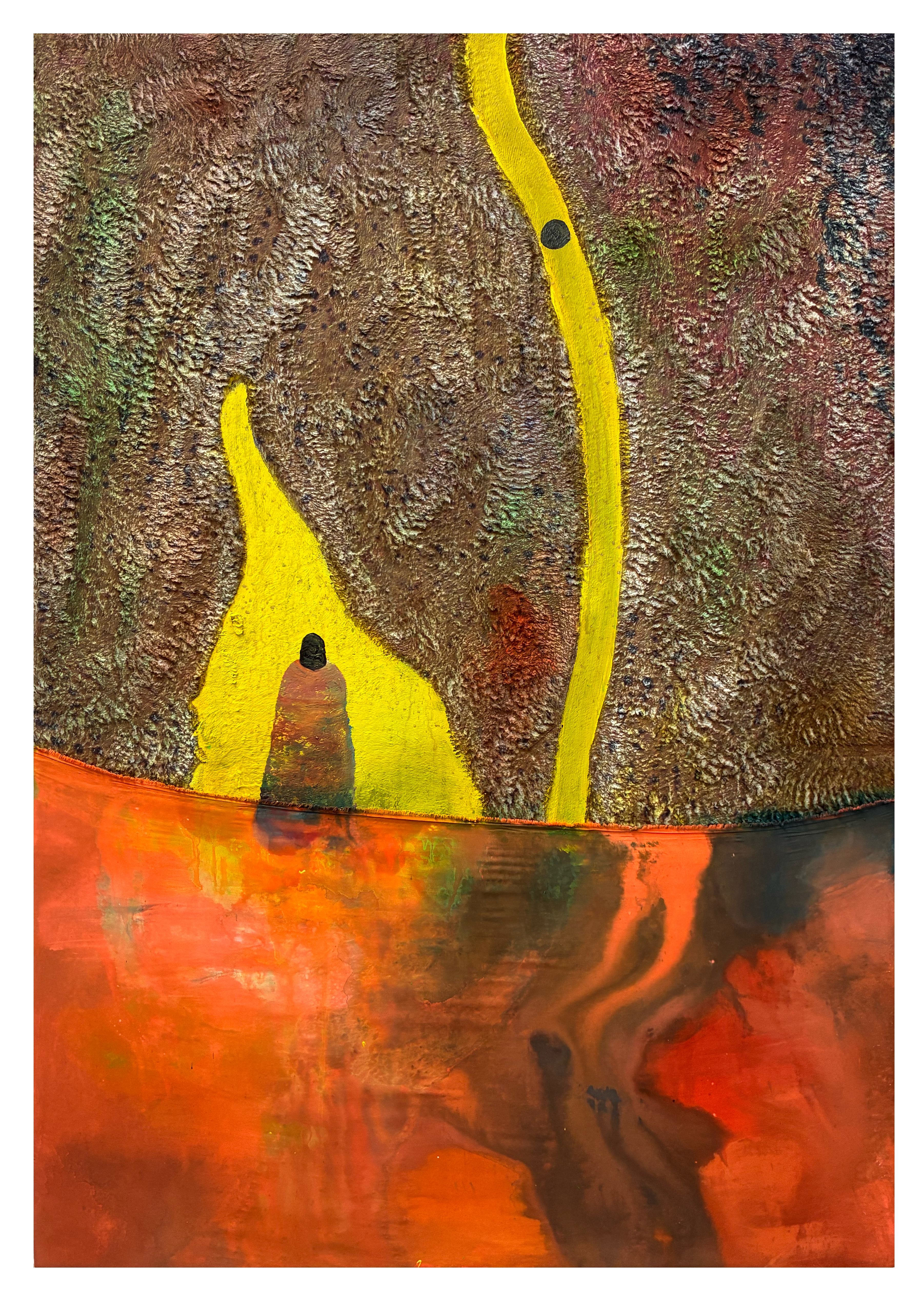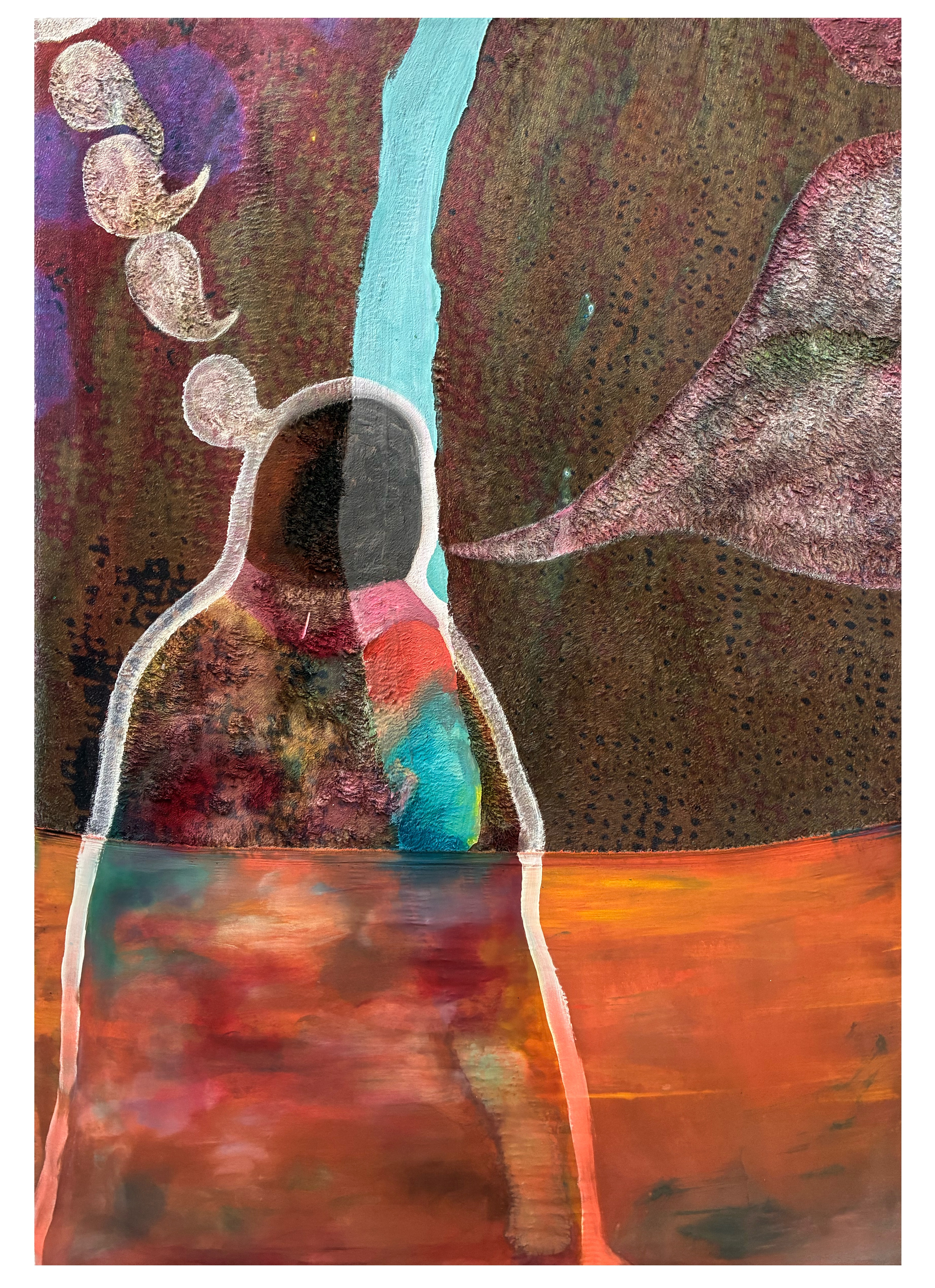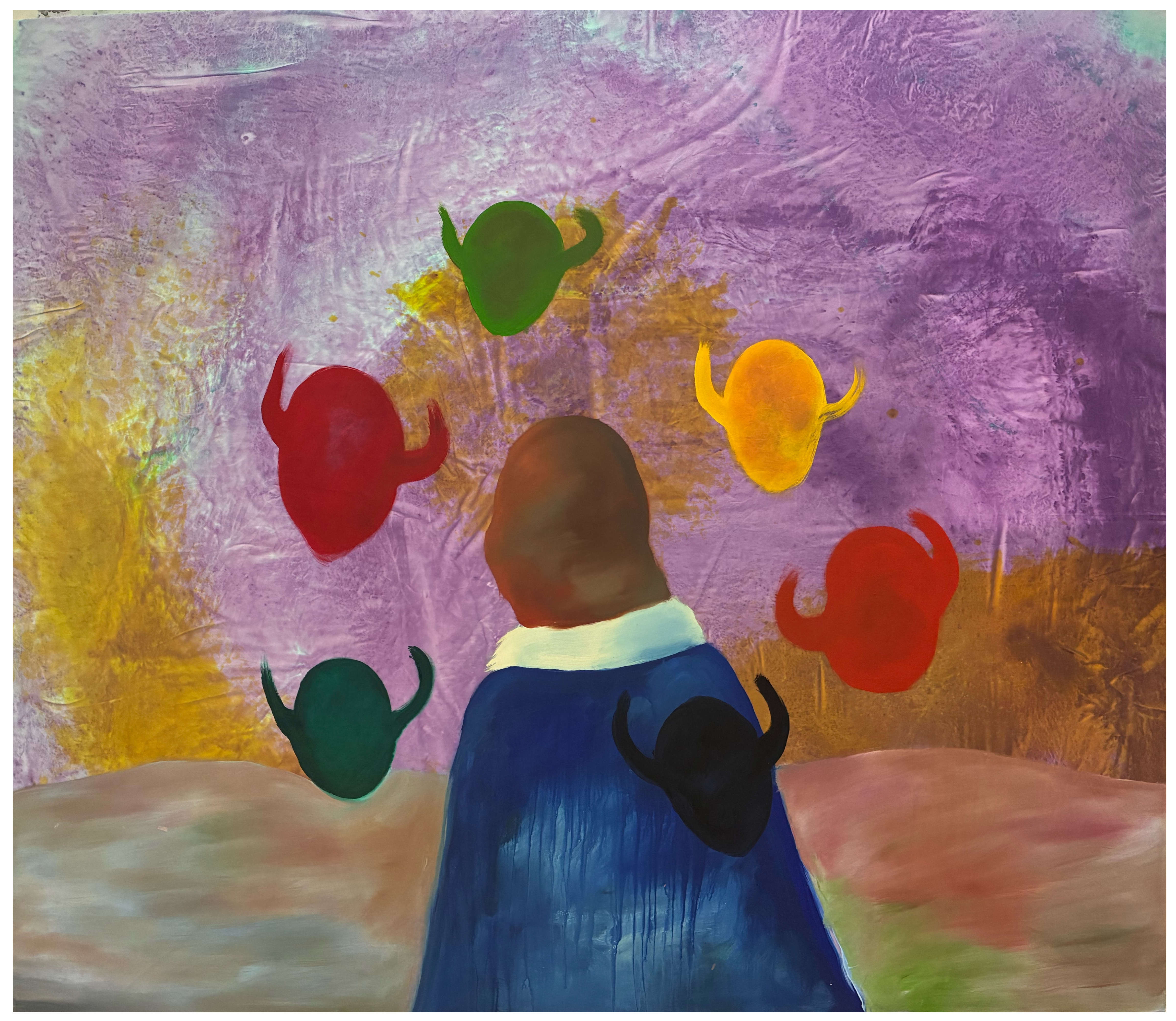 En paralelo, Enrique Rivera Príncipe explora el tránsito entre lo espiritual, lo ancestral y lo cósmico mediante personajes que atraviesan procesos de transformación, señales que orientan caminos interiores y formas luminosas que sugieren conexiones entre distintos planos de existencia. Su obra propone una lectura abierta, donde cada espectador puede construir su propia narrativa en diálogo con estos elementos.