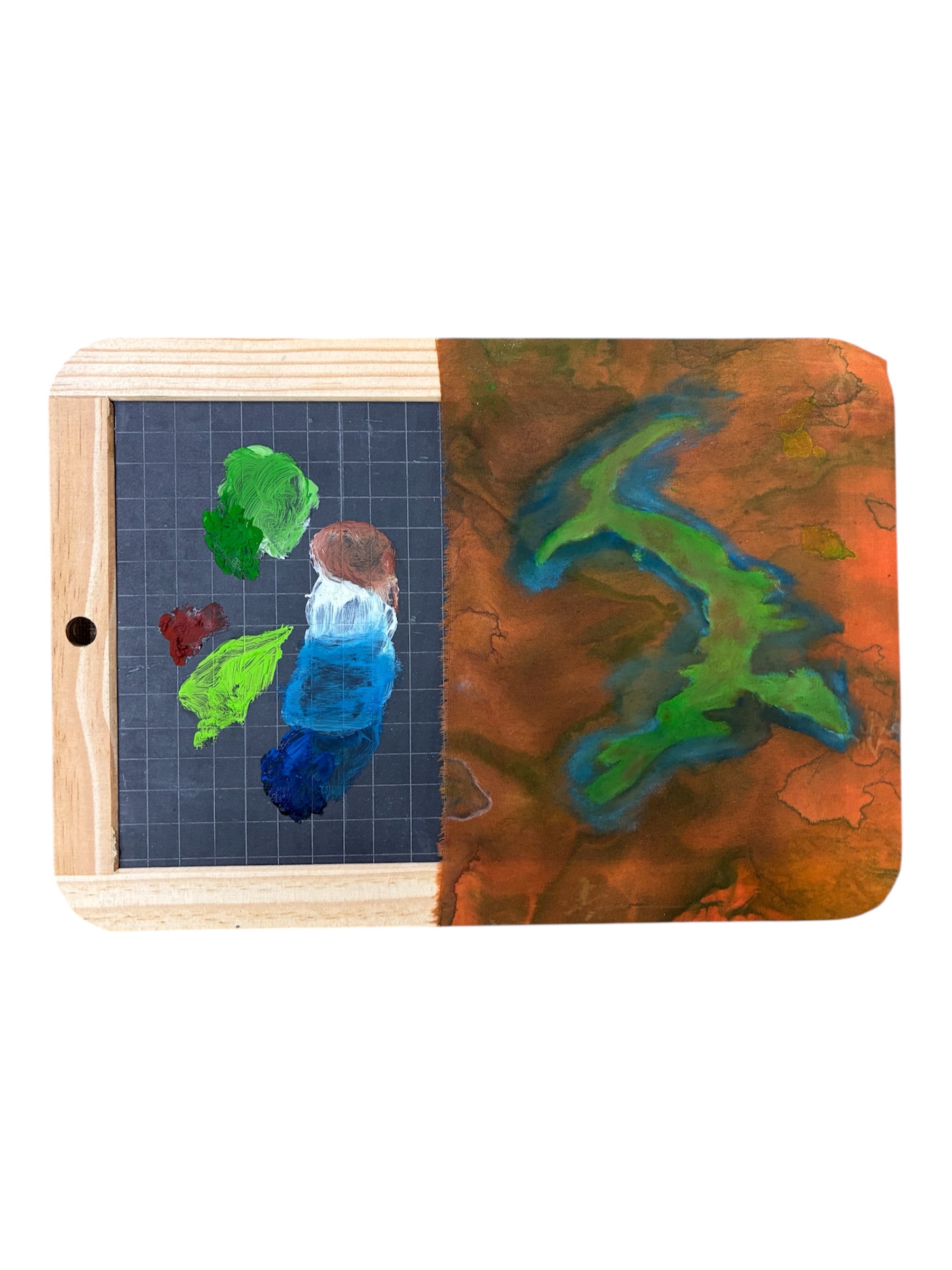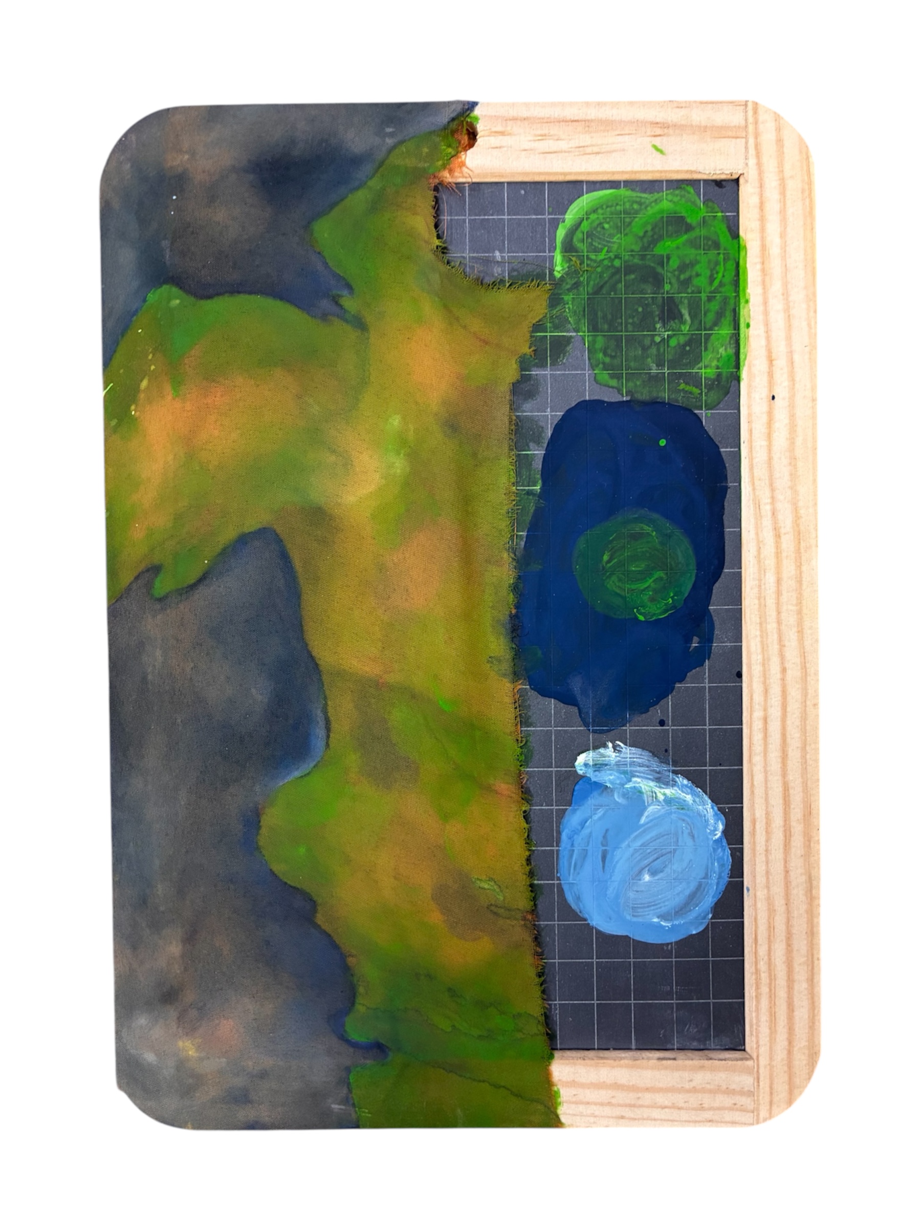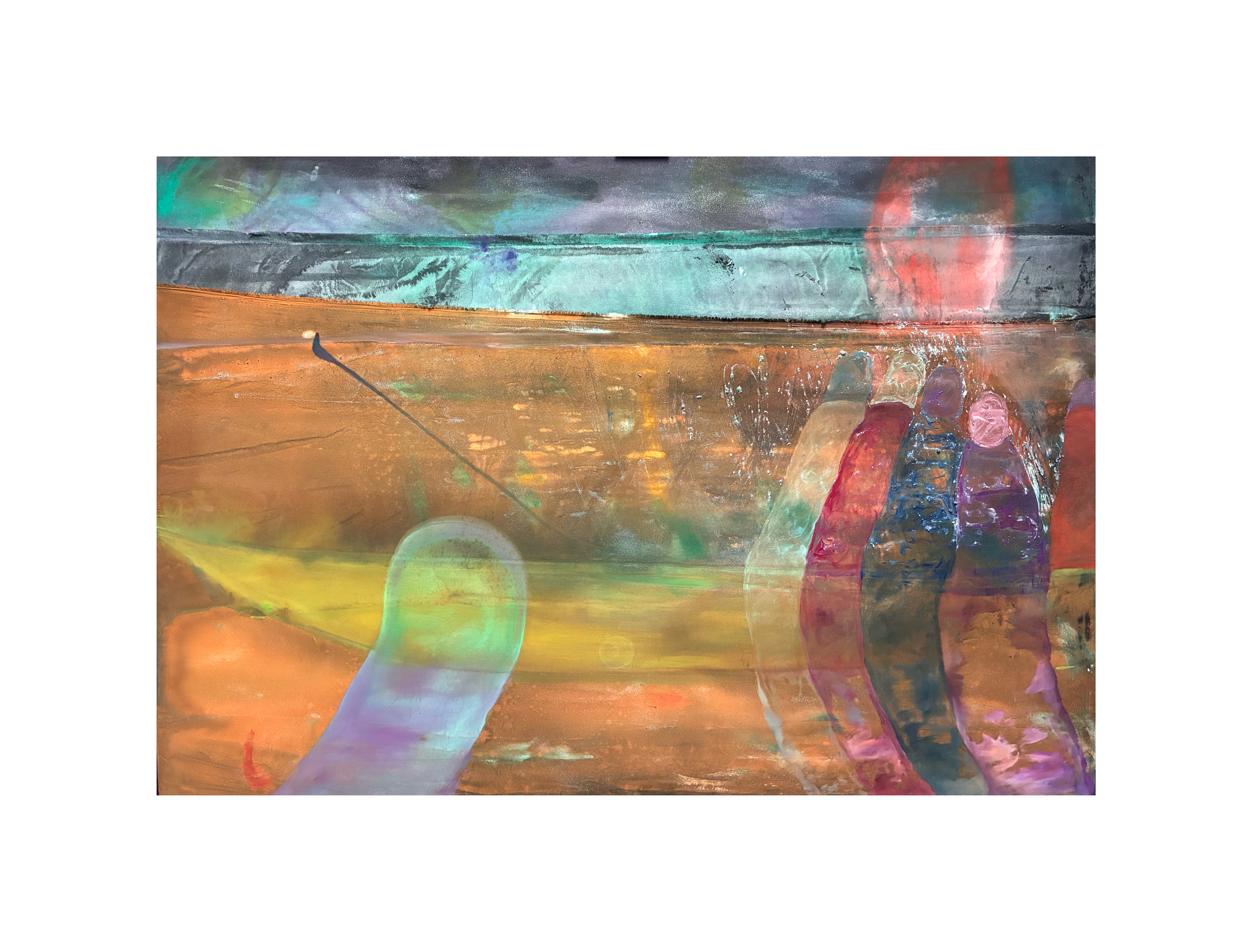 Sofía del Mar Collins desarrolla un imaginario en el que lo acuático y lo celeste se fusionan a partir de sus experiencias en el manantial de Guayaney, en Puerto Rico. En sus obras, los peces, las figuras híbridas y las geometrías platónicas abren un espacio donde la percepción se expande hacia territorios intuitivos y etéreos, invitando a contemplar el paisaje como un umbral hacia lo simbólico y lo misterioso.