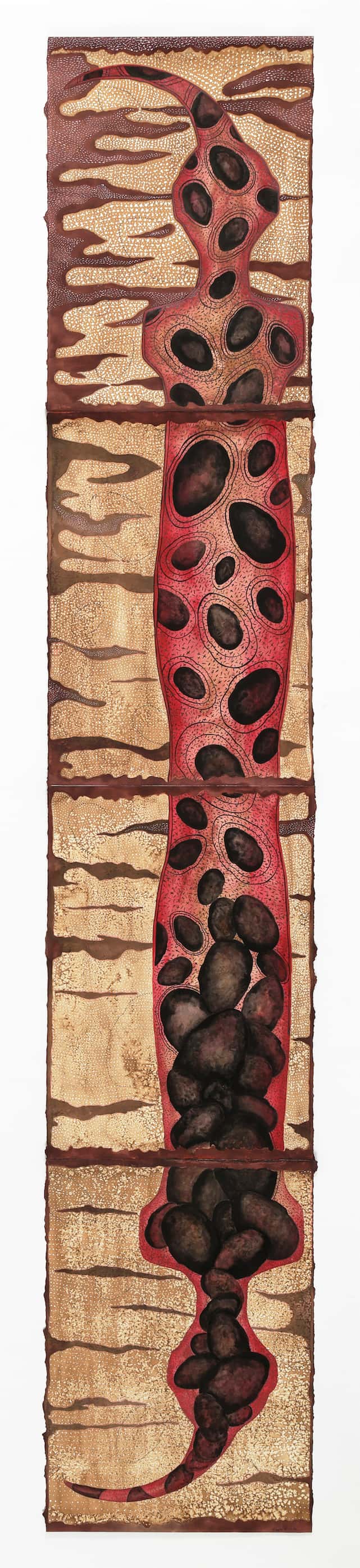 His ceramics at times call forth those strange worlds that inhabit the sea, on its surface and within its depths — worlds born from his surreal imagination, enriched by anthropological inquiry, belief systems and personal experiences. At other moments, his works on paper, layered in mixed media and delicate transparencies, return us to our condition as an island and an archipelago, spaces eternally connected and shaped by the sea.