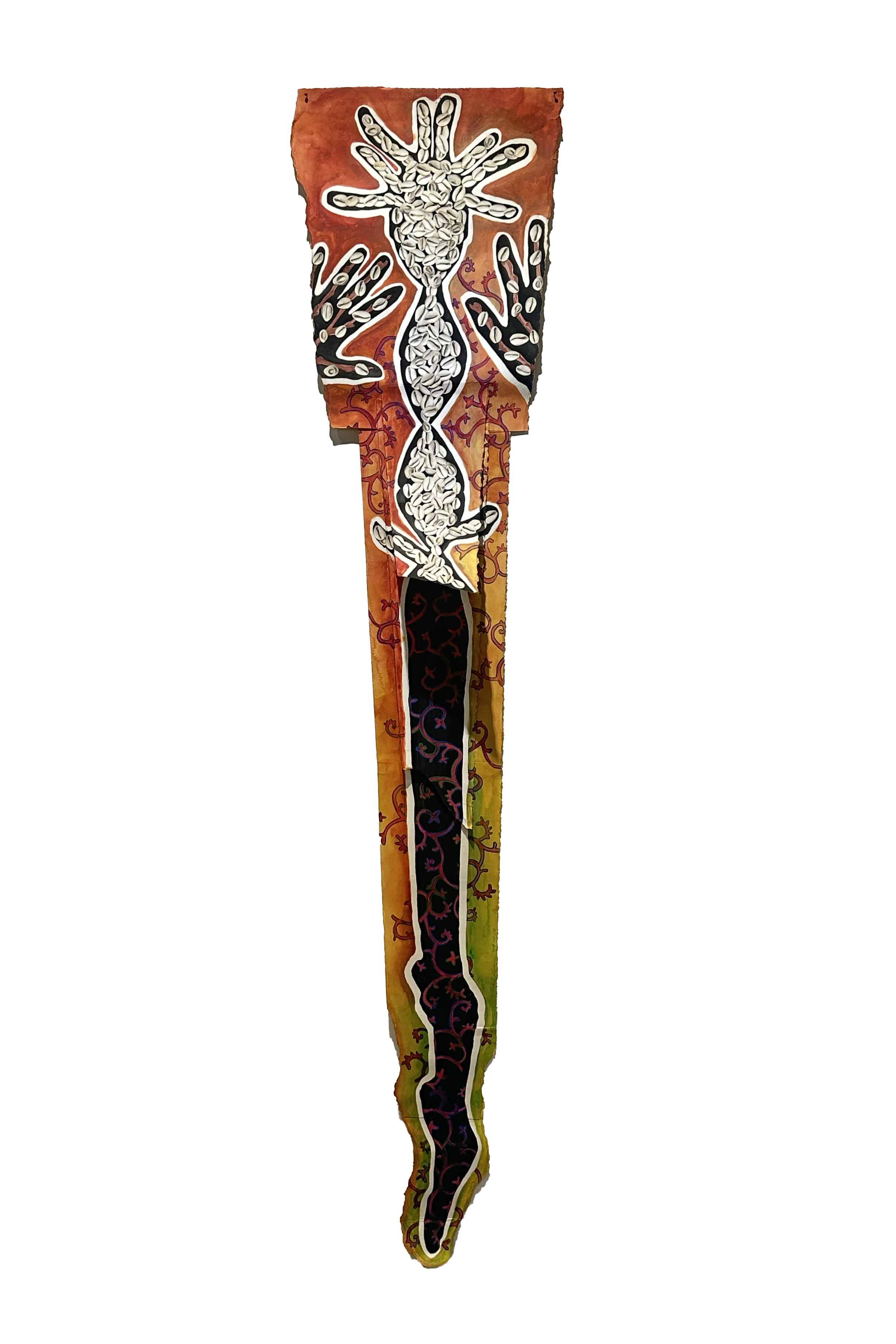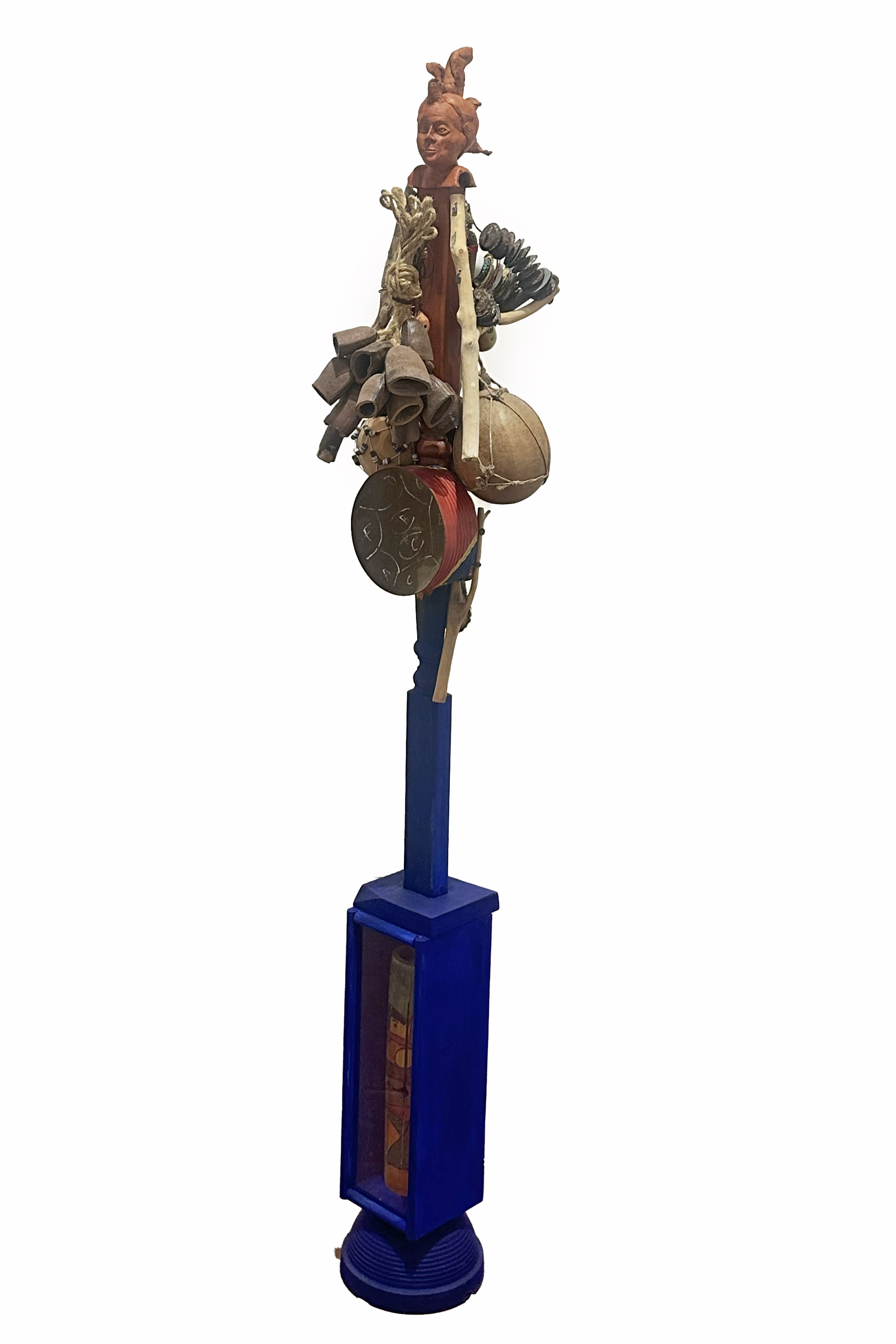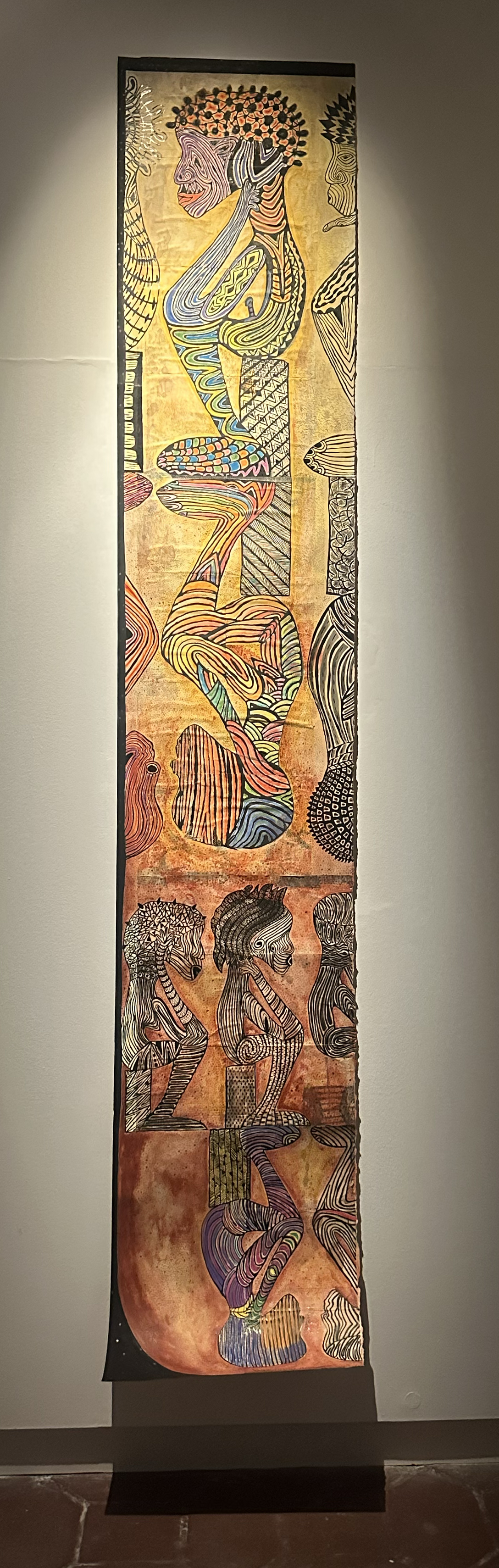 Kiván Quiñones Beltrán continues to astonish us with the maturity of his work. As a creator of found, painted or constructed objects, he leads us into a realm of hanging textiles assembled with striking intention, at times evoking shamanic dwellings or ascending altars.